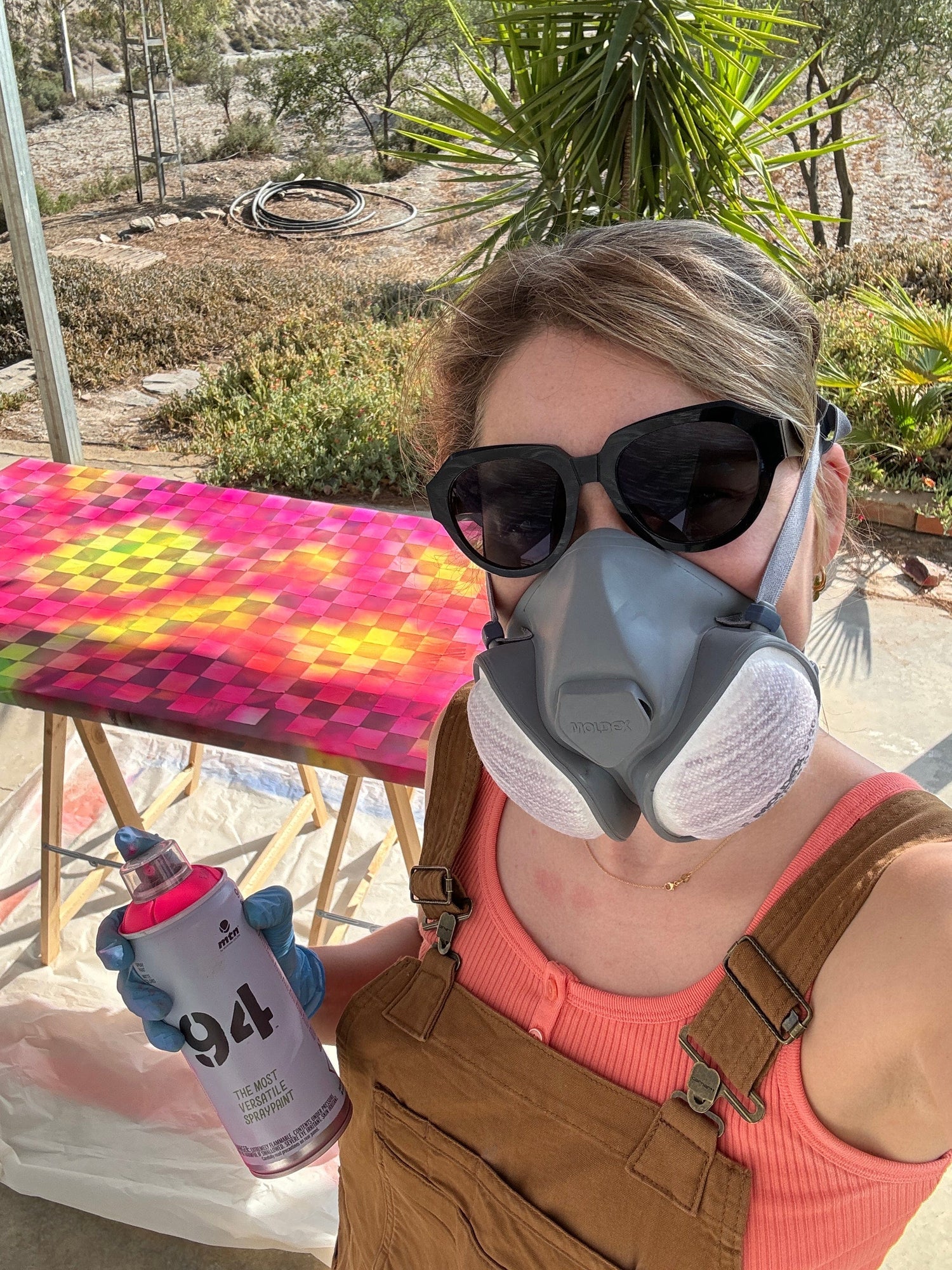 Djuro combines the spontaneous nature of paint application like spray paint or pouring with controlled masking techniques, brushstrokes, using acrylic and oil paints. She incorporates paint-soaked netting and a process of masking, adding and subtracting layers, building anachronistic compositions that create visual interference evocative of screen glitches, as well as of hypnagogic, inner eye images.